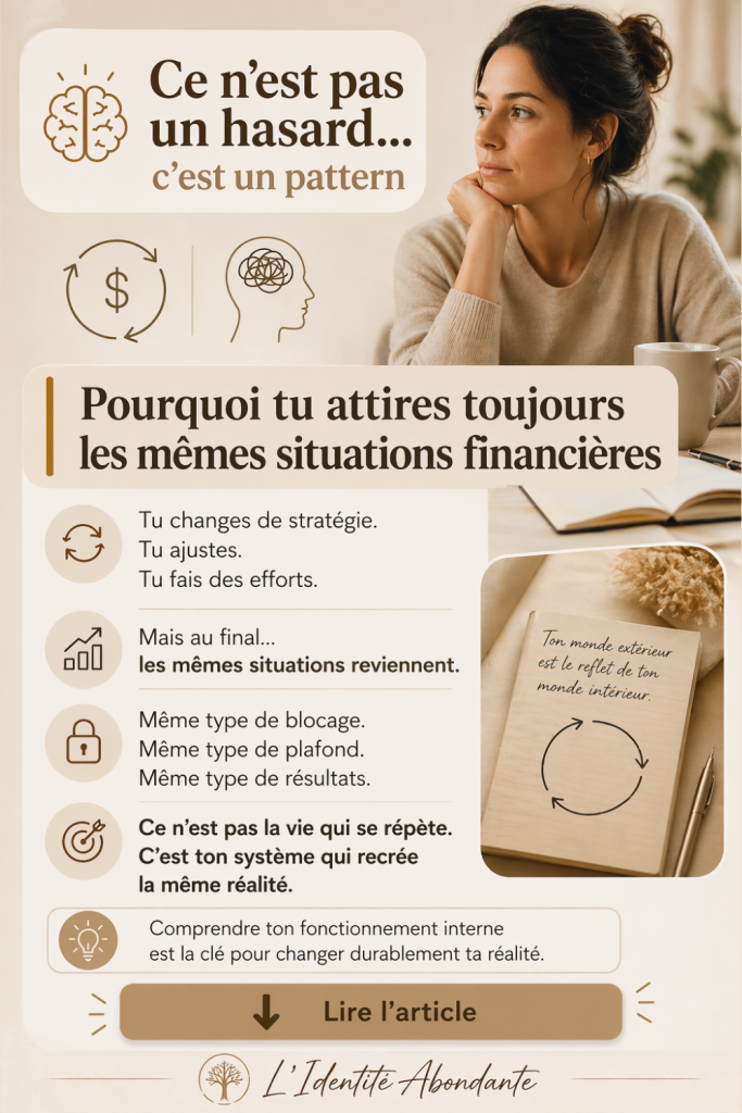 Tu vas comprendre le mécanisme psychologique profond qui fait que tu attires toujours les mêmes situations financières… et surtout pourquoi ce n’est pas un problème extérieur.