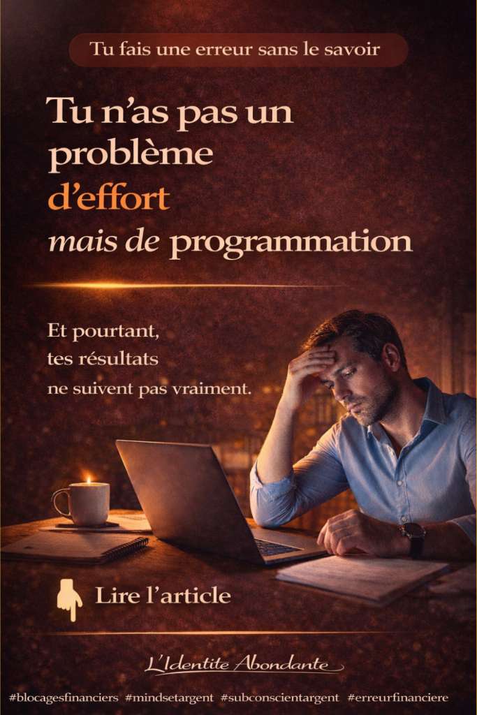 Mais ce raisonnement, même s’il peut fonctionner dans certains contextes, devient rapidement une illusion limitante lorsqu’il est appliqué à des situations où le véritable problème ne se situe pas au niveau de l’effort, mais au niveau de ce qui se passe en arrière-plan, dans ton fonctionnement interne, dans ton subconscient, dans ce que l’on appelle ta programmation financière.